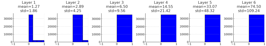 在这段代码中,使用p来控制权重的初始化范围。不同的p值会影响网络的训练效果。p较小时(如0.01),随着层数加深,方差逐渐趋近于0,导致梯度消失;