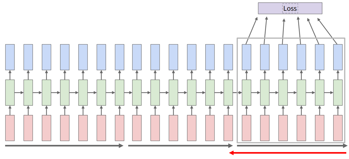 循环神经网络的损失函数可以定义为各个时间步的损失之和。当我们处理一个长序列时,在整个网络中进行反向传播会导致梯度消失或梯度爆炸,还可能会带来存储压力。为了解决这个问题,可以使用截断的反向传播(truncated backpropagation through time),即只在一定数量的时间步内进行反向传播,而不是在整个序列上进行。