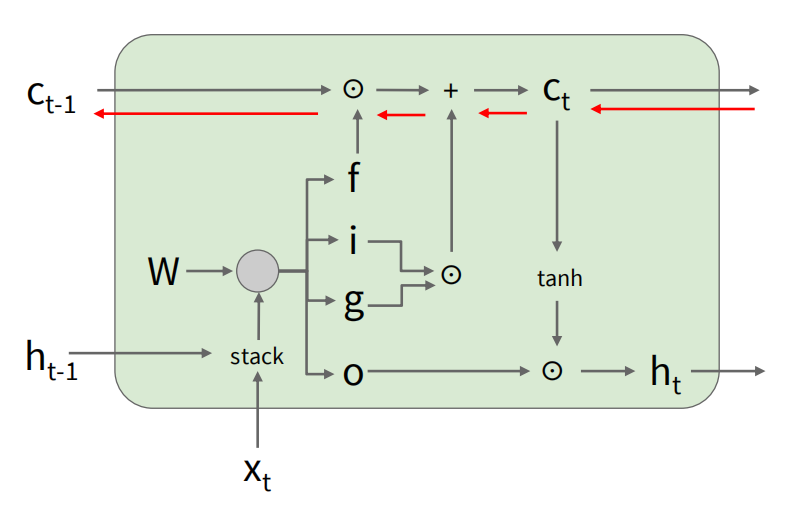 ct=ftct1+itgtc_t = f_t \odot c_{t-1} + i_t \odot g_t